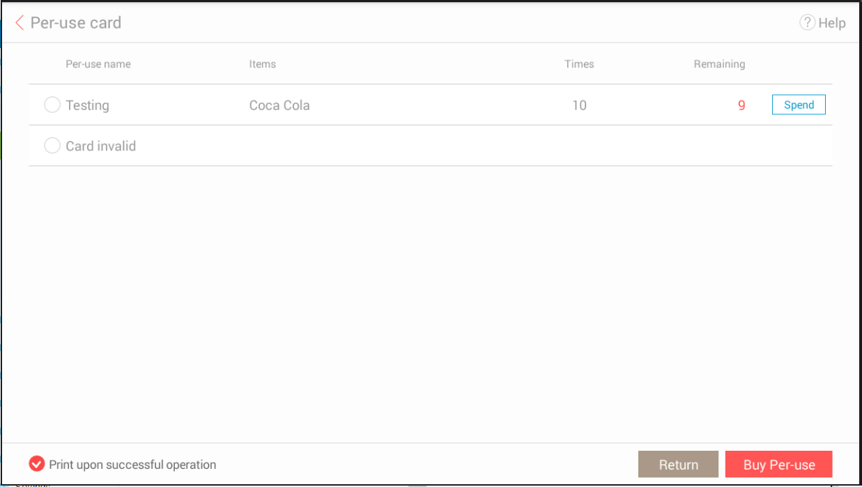 Example, A $20, 10 times per-use card for an item, the Big Mac Valid for 3 months.