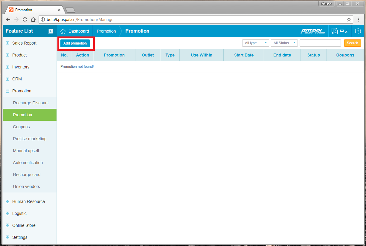 2. Select Promotion under Promotion Tab
